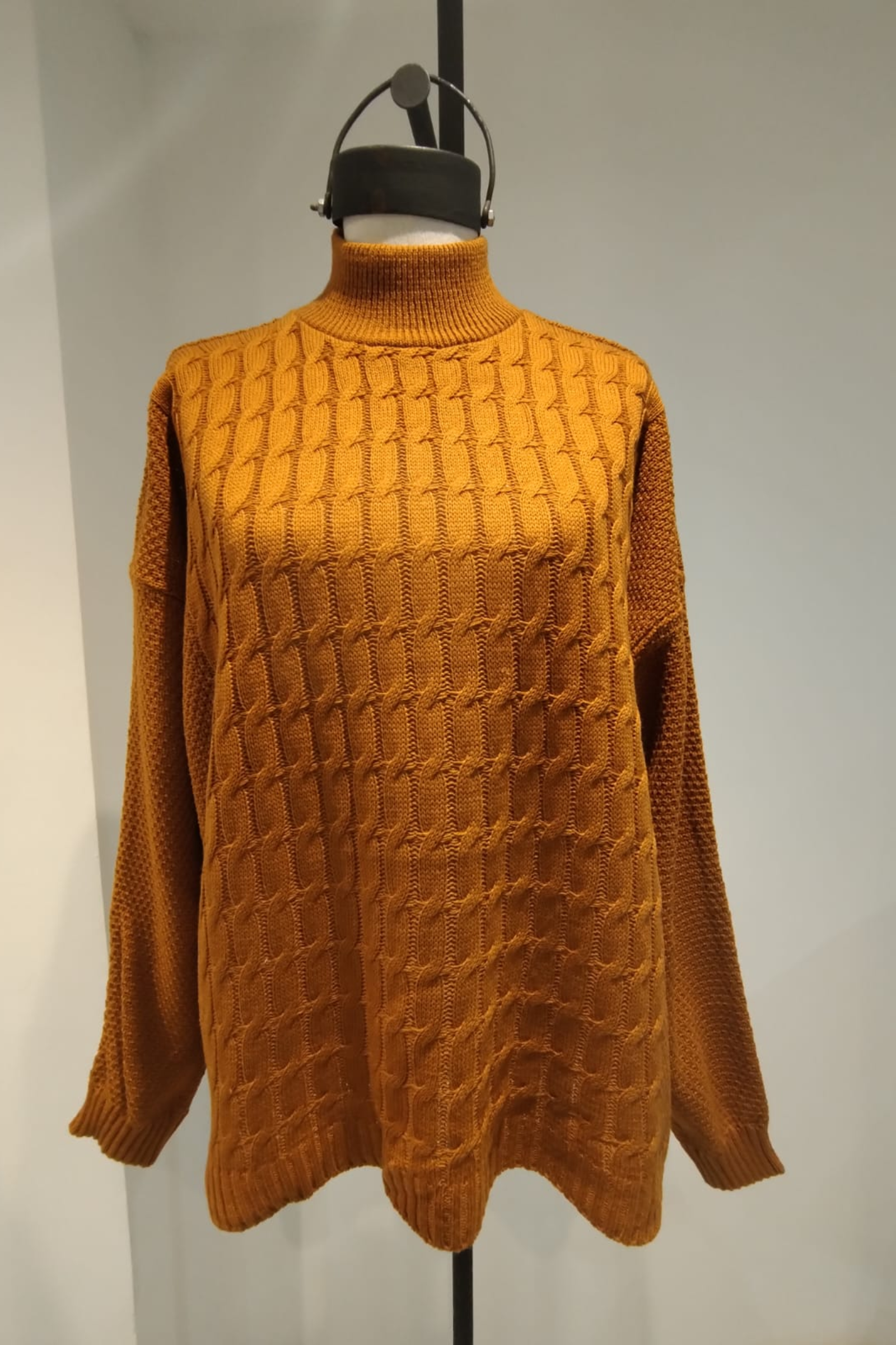 Media polera con mil trenzas en el centro. Tejido: acrílico